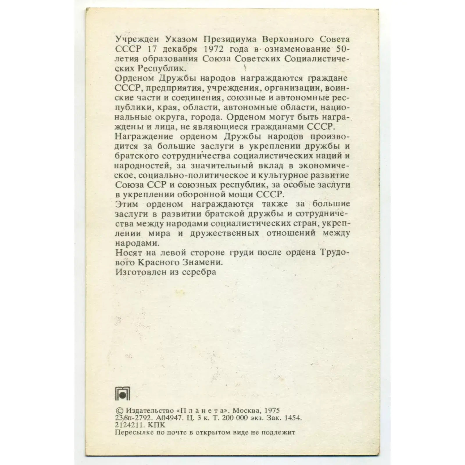 This award holds great significance in Soviet history. It represents the dedication and hard work of the Soviet people. The vintage postcard is a perfect addition to any collection. It also makes a thoughtful gift for anyone interested in Soviet history. Each postcard is an authentic piece from Planet Publishers House, Moscow, 1975. The Order of Honour postcard is a rare find, and owning one connects you to a rich history of excellence and achievement.