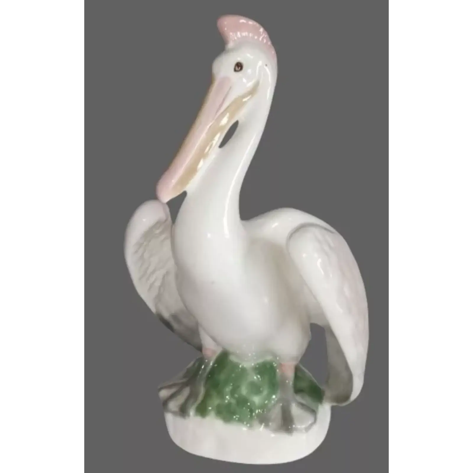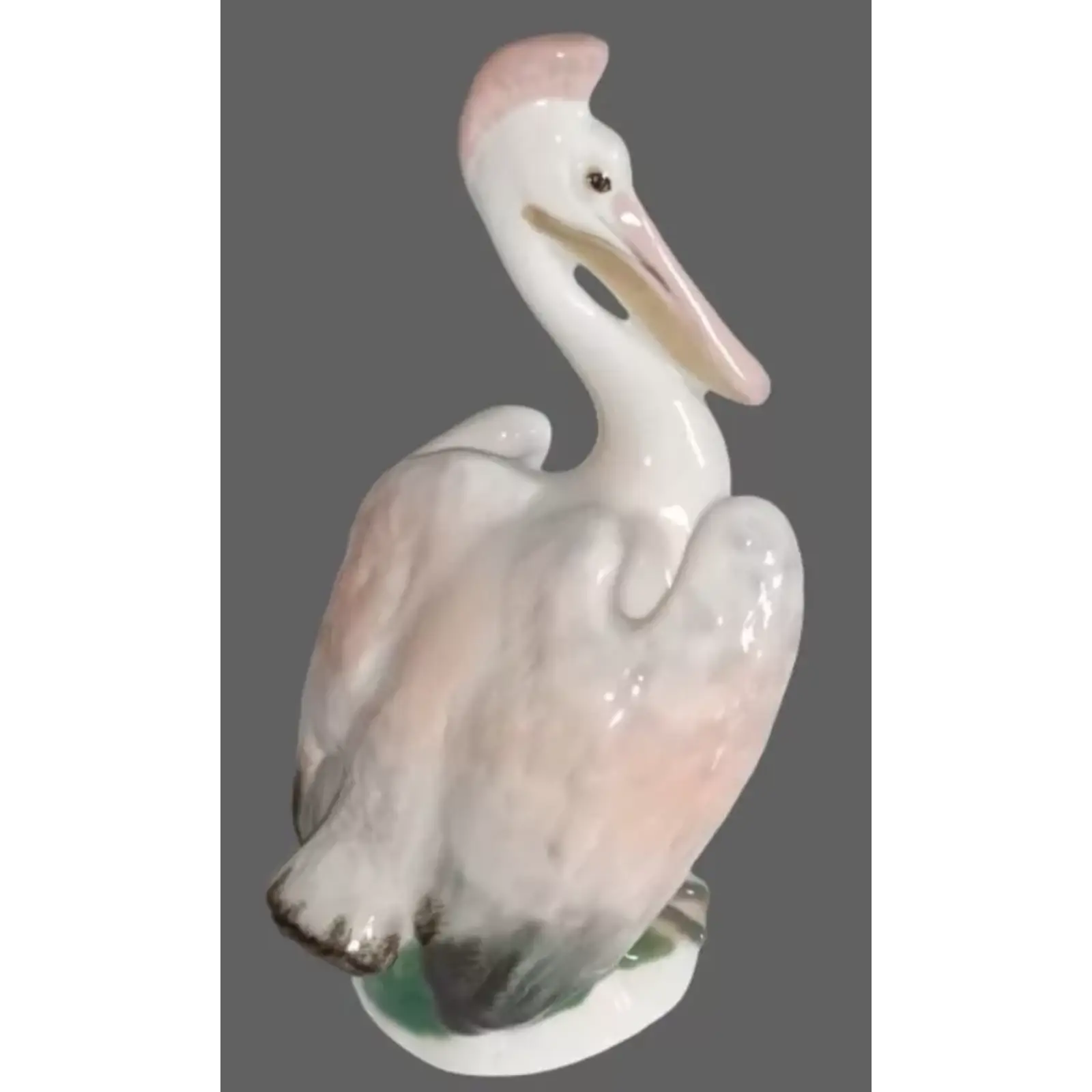 Sculpture Pelican is made at the Imperial Porcelain Factory of soft porcelain in the technique of hand-painted underglaze painting. The author of the form – Vorobiev B.Ya. Produced since 1955.