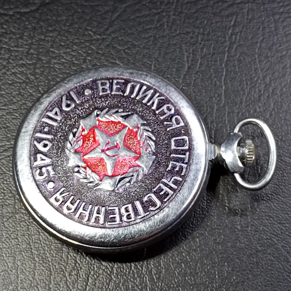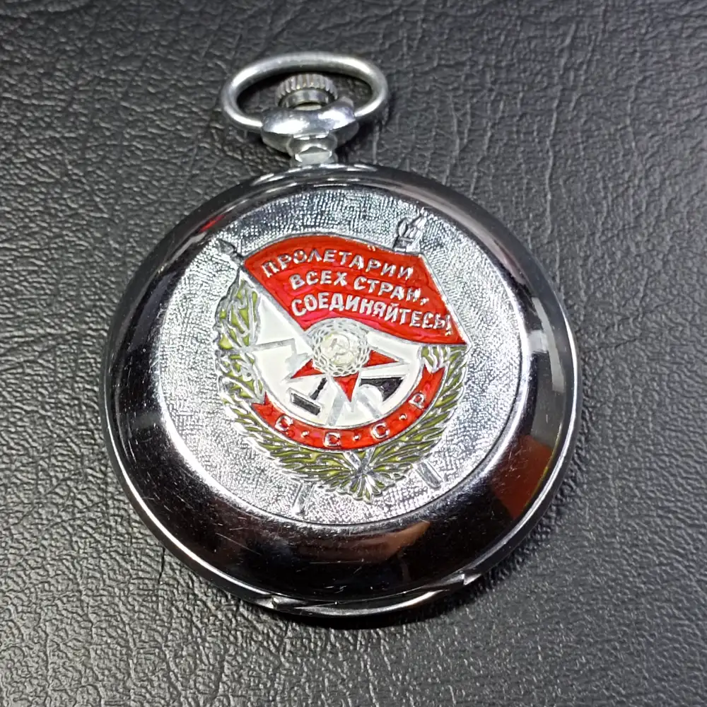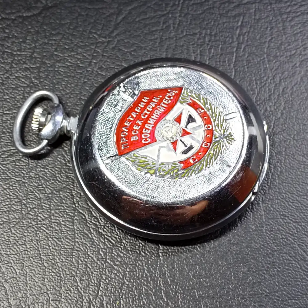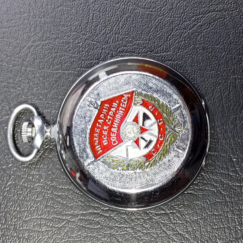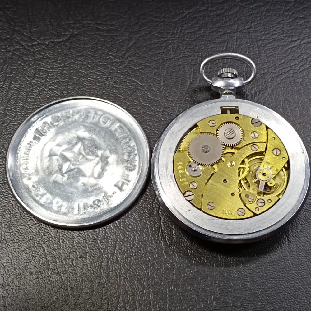 This Molnija pocket watch is being sold as-is and does not come with papers or original packaging. It has a full hunter closure and a silver coloured case and dial. The watch is in pre-owned condition.